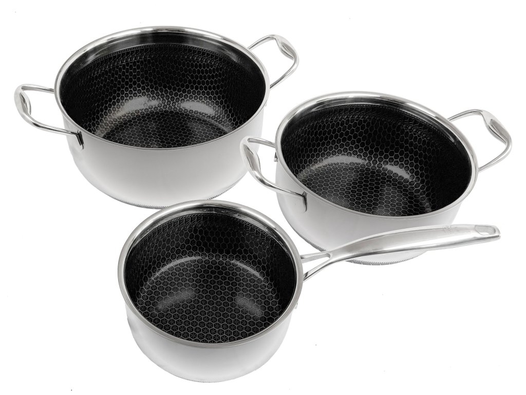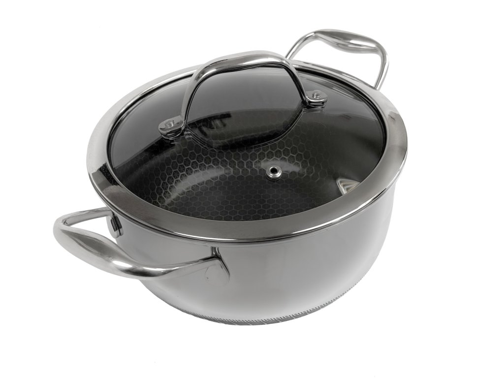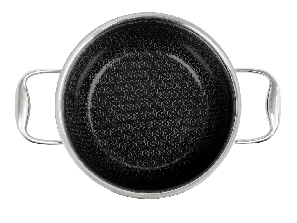 Mé hrnce jsou vybaveny moderním hybridním povrchem, který spojuje pevnost nerezové oceli s praktickou nepřilnavostí. Můžeš restovat, dusit, vařit i redukovat – bez připalování a bez nutnosti používat nadměrné množství tuku.