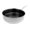 - Do jedné pánve přidáme olivový olej a poklademe brambory stranou řezu dolů. Pánev rozpálíme a opékáme do zlatova. Poté otočíme a necháme opéct i z druhé strany.